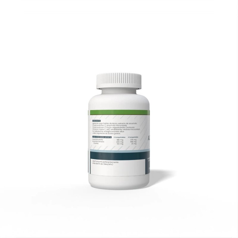 Alcachofa micronizada (Cynara scolymus L), extracto de alcachofa (cynara scolymus L.) fructooligosacáridos (Achicoria Cichoriumintybus, raiz), agente de carga: fosfato cálcico, maltodextrina y antiaglomerante: silice y estearato de magnesio.