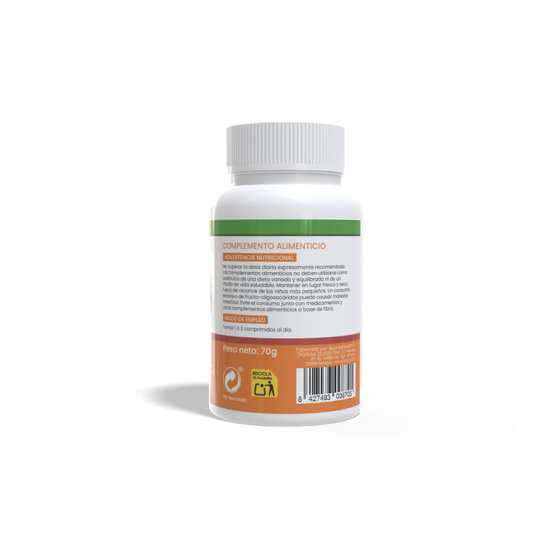 No superar la dosis diaria recomendada. Los complementos alimenticios no deben utilizarse como sustitutos de una dieta variada y equilibrada ni de un estilo de vida saludable. Evitar el consumo junto con medicamentos y otros complementos alimenticios a base de fibra. Un consumo excesivo de fructo-oligosacáridos puede causar malestar intestinal. Mantener fuera del alcance de los niños más pequeños.