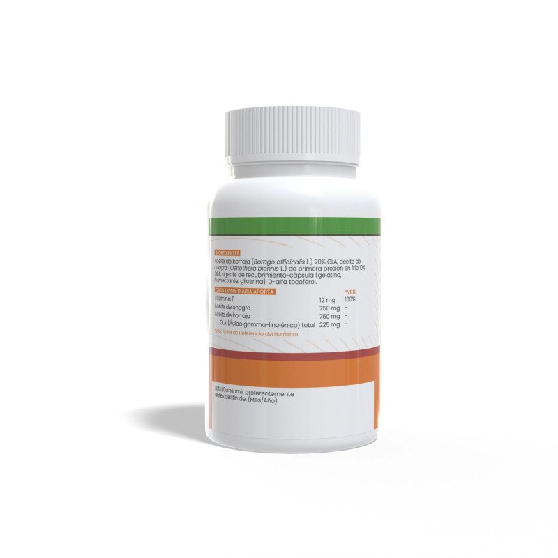 Aceite de borraja de primera presión en frío (Borago officinalis L., 20% GLA (ácido gammalinolénico)), antioxidante: D-alfa tocoferol (vitamina E). Cápsula: agente de recubrimiento (gelatina), humectante (glicerina (E 422)).
