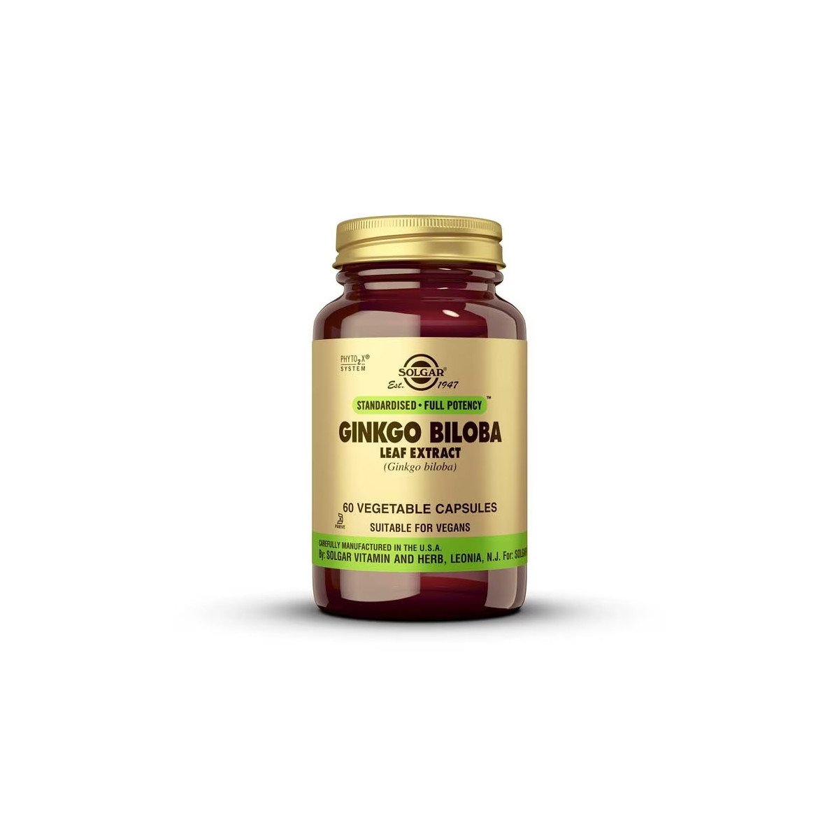 Ginkgo Biloba de Solgar® es un complemento alimenticio formulado con extracto estandarizado de hoja de Ginkgo biloba (con ginkgoflavoglicósidos y terpenolactonas) y hoja de ginkgo biloba en polvo. Pertenece a la gama de productos herbales estandarizados de Solgar®, seleccionados bajo criterios de calidad y con un aporte estable de principios activos de un envase a otro.