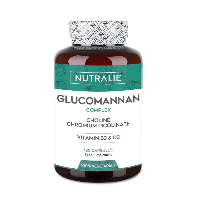 El suplemento glucomanano de Konjac, presente en nuestro Glucomanano Complex, ayuda a adelgazar cuando se sigue una dieta baja en calorías, además contribuye a mantener niveles normales de colesterol sanguíneo. El complemento alimenticio Glucomanano Complex combina la fibra vegetal del glucomanano de Konjac, propia de Asia, con bitartrato de colina, picolinato de cromo y vitaminas B3 y D3.