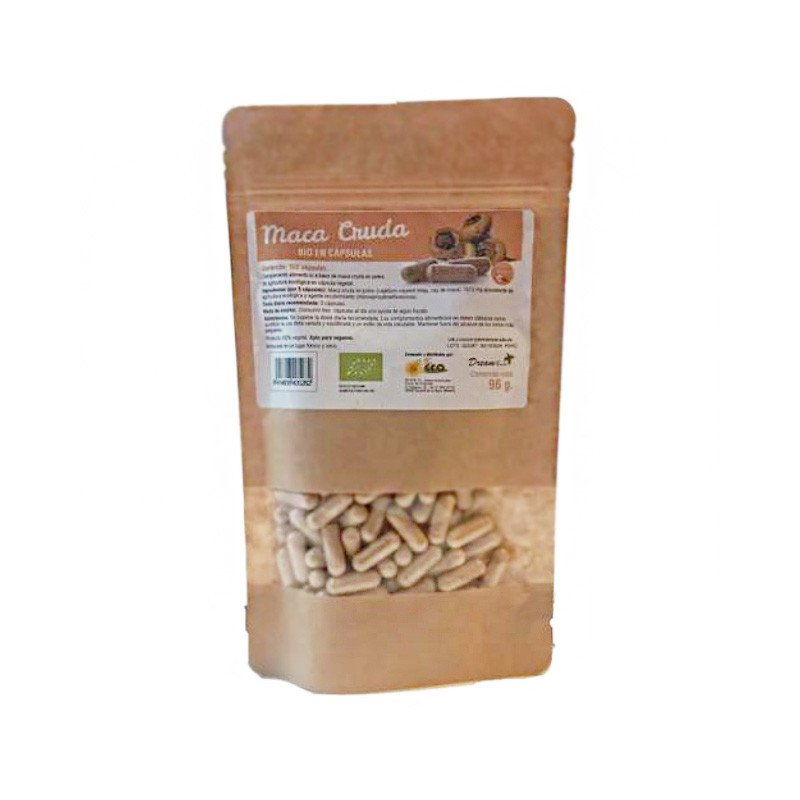 Maca cruda en polvo (Lepidum meyenil Waip, raiz de maca) 1620 mg procedente de agricultura ecológica y agente de recubrimiento (hidroxipropilmetilcelulosa).