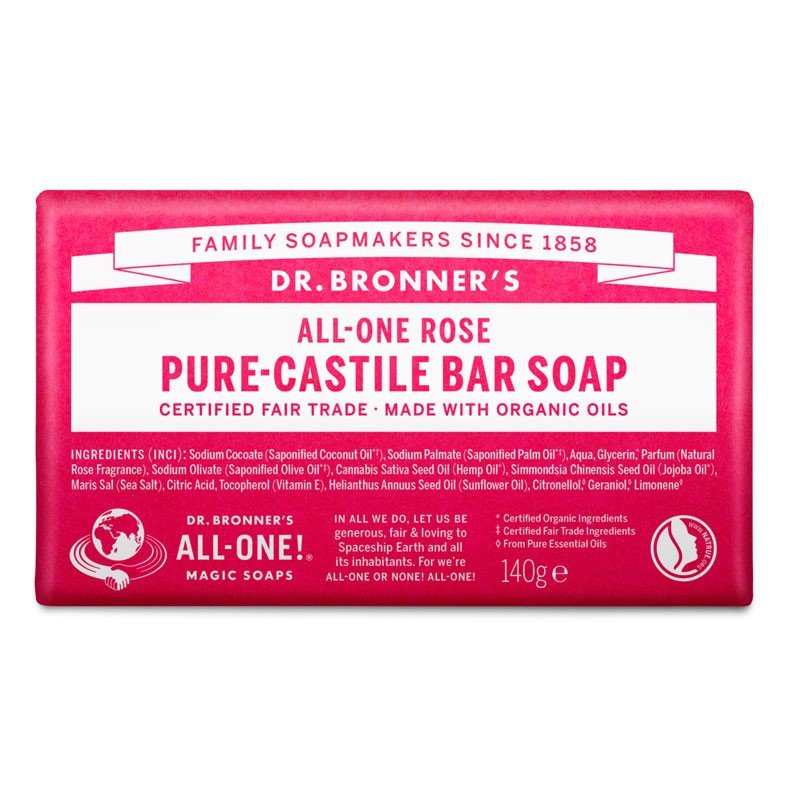 Las pastillas de jabón de castilla puro Dr. Bronner son biodegradables, veganas, ligeras y versátiles, perfectas para lavar el cuerpo, la cara o el pelo. Con suficientes horas de sueño y los jabones del Dr. Bronner, tienes todos los cosméticos que necesitas para limpiar el cuerpo, la mente, el alma y el espíritu.