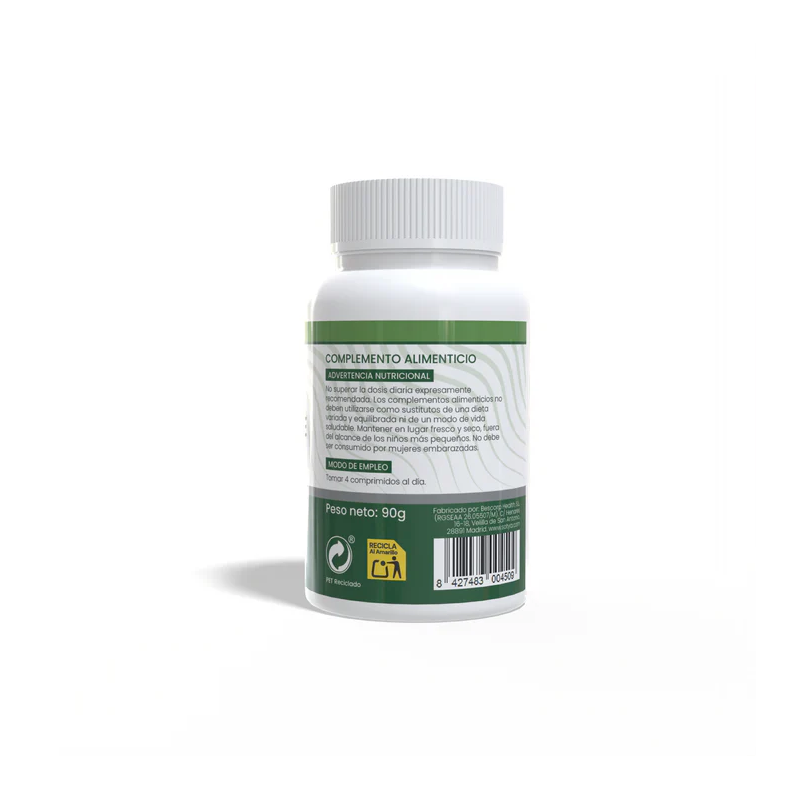 No superar la dosis diaria expresamente recomendada. Los complementos alimenticios no deben utilizarse como sustitutos de una dieta variada y equilibrada ni de un modo de vida saludable. Mantener en lugar fresco y seco, fuera del alcance de los niños más pequeños. No debe ser consumido por mujeres embarazadas.