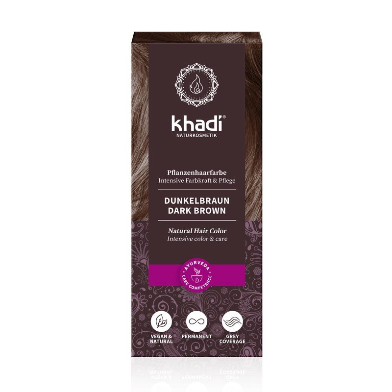 El Dark Brown de Khadi ha sido calificado como «muy bueno» por ÖkoTest, una etiqueta de calidad independiente. El color de cabello natural es 100% natural, vegetal y vegano. Ingredientes valiosos como índigo, henna, amla y bhringaraj proporcionan un color oscuro y rico, y cubren tu cabello gris. La característica especial del color de cabello Khadi dark brown es que contiene el mayor contenido de índigo de todos los tonos marrones para un resultado de color intensivo.